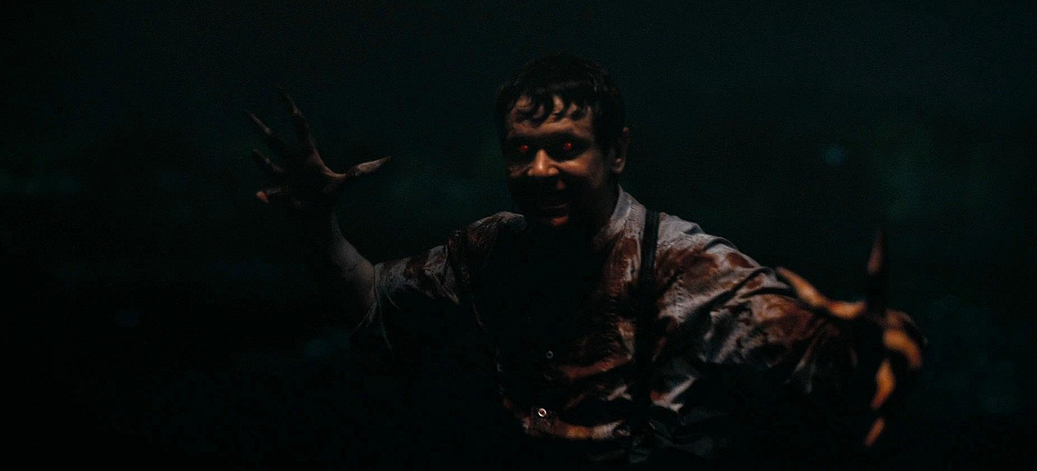Sammy, the preacher’s son, limps down the aisle towards his father, tattered and bloody. The declaration of his assumed sin enough to trigger a flashback: a bloodied monster illuminated by the night behind him, there and gone in a blink of an eye. His father’s accusatory tone and evangelizing posture enough to mentally place Sammy right back into the trauma he experienced the night prior. These flashbacks warn us of the horror to come while also explicitly linking the violence and domination both the monster and the church-father perpetuate in the lives their actions have demonized.