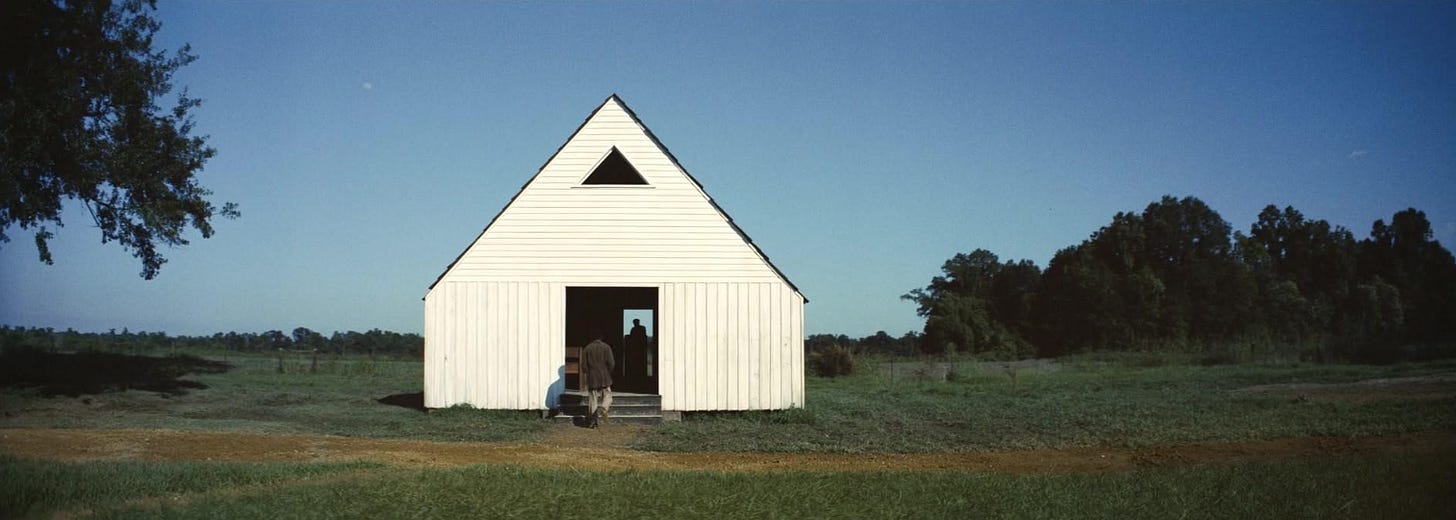 With the sun in the sky Sinners quickly greets us with a tone setting tune; a familiar tune; a beckoning tune. A white church illuminated by the welcoming brightness of dawn’s glow as This Little Light of Mine gently drifts from behind closed doors. The church’s flock is cloaked in a sea of white cloth while, by way of his profession, the preacher is the only one donned in black. Alongside his uniform the preacher’s position above all others informs us of the imposed hierarchy. A hierarchy immediately confirmed when he commands care to be delayed and all begrudgingly abide.