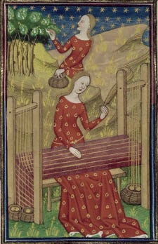 To require care is foundational to the human experience, yet women have been disproportionately burdened by the labor of that care since the installation of patriarchy. This labor, though necessary to keep society functioning, was deemed menial enough not to warrant documentation within the histories. Yet this care work dominated medieval women’s schedules, and we know it was so much more than just rearing children and tending house—as any modern woman carrying the mental load of a household can attest to. We know women of the Middle Ages held jobs that we typically associate with men because words exist to explain such actions.14 However, similarly to today, women’s labor was often deemed cheaper and this is because within patriarchal gender roles, multitasking was seen as inherent to femininity. To pay them less was only “natural,” as one 11th century guide points out.15